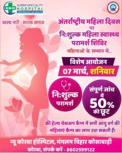कोरबा (ट्रैक सिटी)/ अंतरराष्ट्रीय महिला दिवस के अवसर पर न्यू कोरबा हॉस्पिटल ने समाज के प्रति अपनी जिम्मेदारी निभाते हुए महिलाओं के स्वास्थ्य को समर्पित एक विशेष निःशुल्क स्वास्थ्य परामर्श शिविर का आयोजन किया। शनिवार 7 मार्च को आयोजित इस शिविर में शहर और आसपास के क्षेत्रों से बड़ी संख्या में महिलाओं ने पहुंचकर स्वास्थ्य सेवाओं का लाभ उठाया।