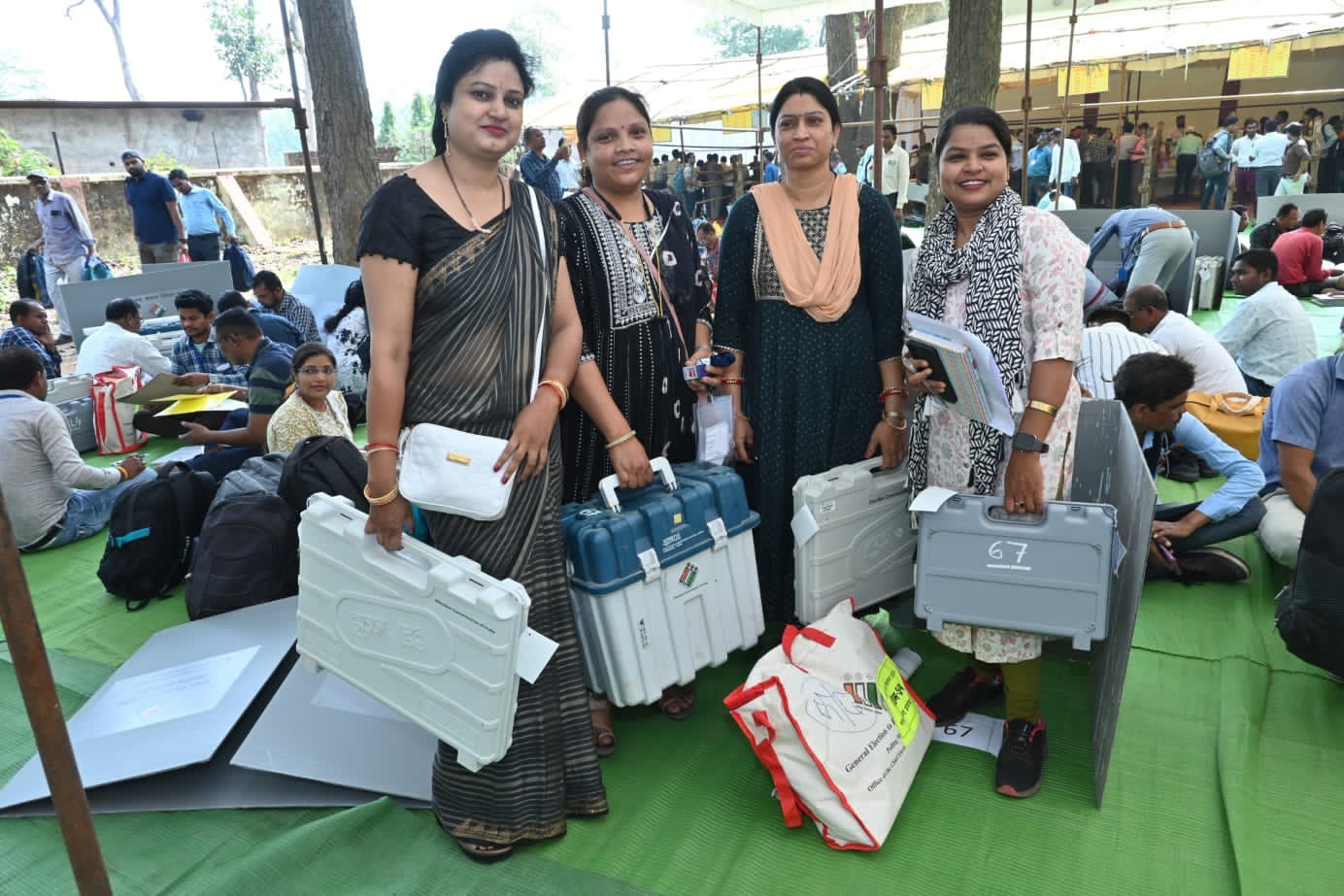नए जिम्मेदारी के निर्वहन के लिए प्रसन्नचित नजर आये मतदान कर्मी।
