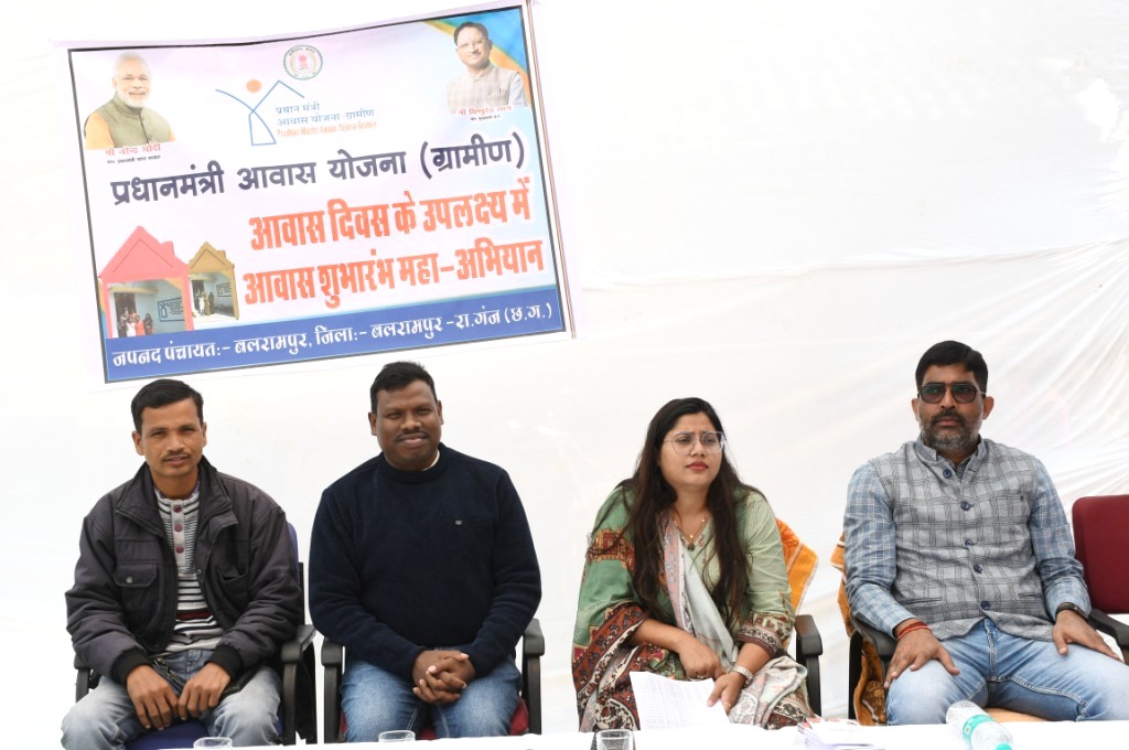 जनपद पंचायत बलरामपुर के विभिन्न ग्राम पंचायतों में जनप्रतिनिधियों ने आवास शुभारंभ अभियान में भाग लेकर आवासों को शीघ्र पूर्ण कराने प्रेरित किया