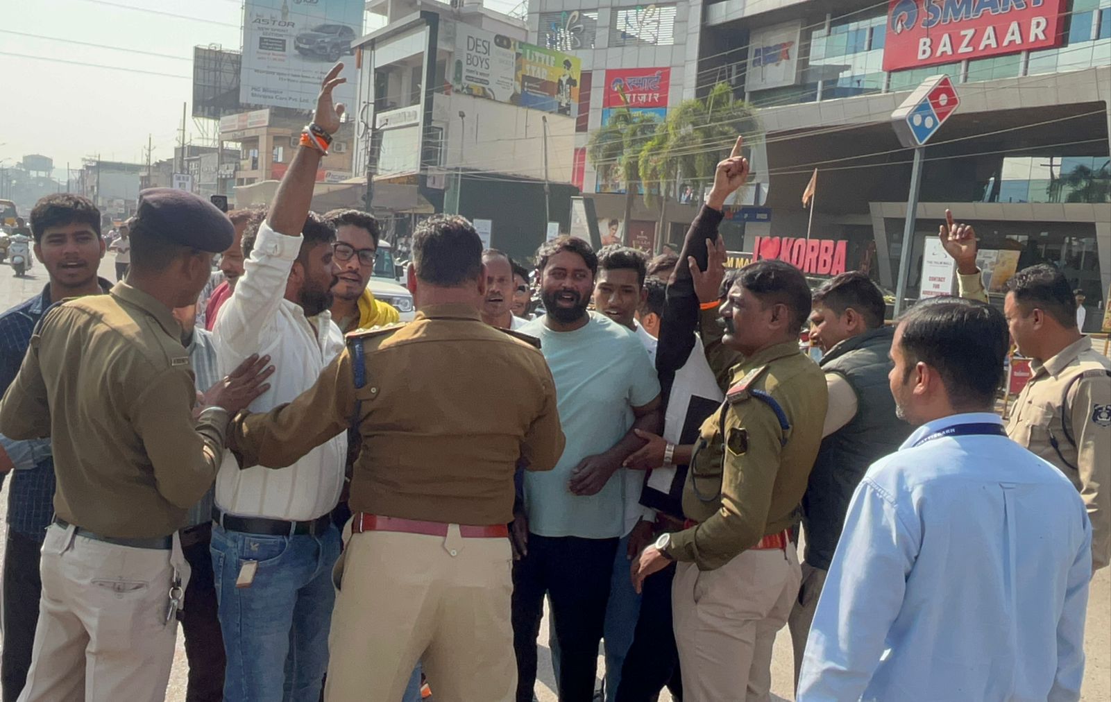 कोरबा (ट्रैक सिटी)/ युवा कांग्रेस ज़िला कोरबा द्वारा युवा कांग्रेस महासचिव मधुसूदन दास के नेतृत्व में बाँकी मोंगरा क्षेत्र एव पोंडी क्षेत्र के समस्या बाँकी मोंगरा क्षेत्र के पूर्व में स्वीकृत हॉस्पिटल के निर्माण कार्य को पुनः प्रारंभ करने,स्टेडियम बनाने,पूर्ण तहसील का दर्जा मंगलभवन की माँग एव जटगा में महाविद्यालय के लिये भवन,स्कूल को हाईसेकेंडरी बनाने,धान ख़रीदी केंद्र खोलने की माँग को को लेकर ज्ञापन सौपने जा रहे थे उस दौरान टीपीनगर चौक के समीप जमकर नारेबाज़ी की गई एव पुलिस द्वारा रोककर नज़रबंद किया गया…!