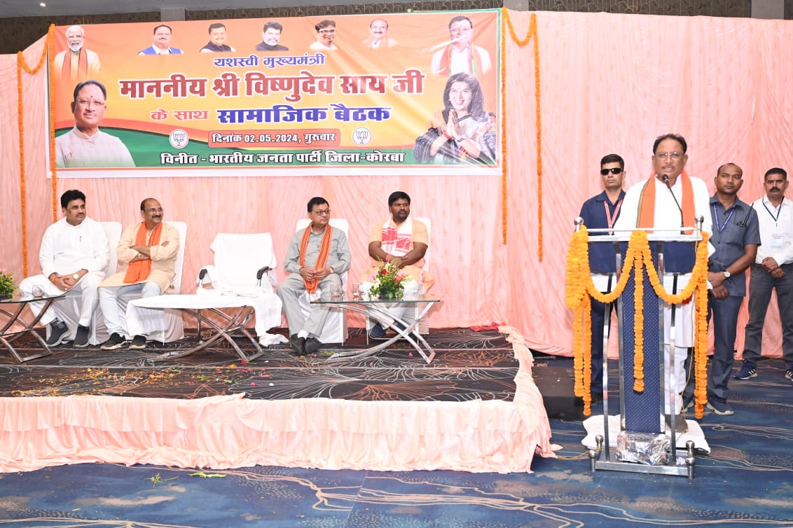 अपने सरल सहज उद्बोधन में सीएम श्री साय ने कहा की बहुत दिन से इच्छा थी आज कोरबा के समाज प्रमुखों से संवाद करने का अवसर मिला। जब प्रदेश अध्यक्ष था तब से मुझे इस पल का इंतजार था। आज आप सभी समाज प्रमुखों के बीच सवांद करने में खुशी हो रही है। सीएम ने कहा की 4 सीटों पर मतदान हो चुकी है, शेष सीटों पर 7 को मतदान होगा। सभी 11 सीटों पर हम जीतने जा रहे हैं। सीएम श्री साय ने कहा ये चुनाव बहुत महत्वपूर्ण है। पीएम मोदी जी को तीसरी बार प्रधानमंत्री बनाना है। मोदी जी देश के गरीबों की चिंता दिन रात करते हैं। श्री साय ने कहा की मोदी जी के पहले कार्यकाल में मुझे भी काम करने का अवसर मिला था। मोदी जी हर वर्ग की चिंता करते हैं। उनके काम करने की ललक को की मैने नजदीक से देखा है।