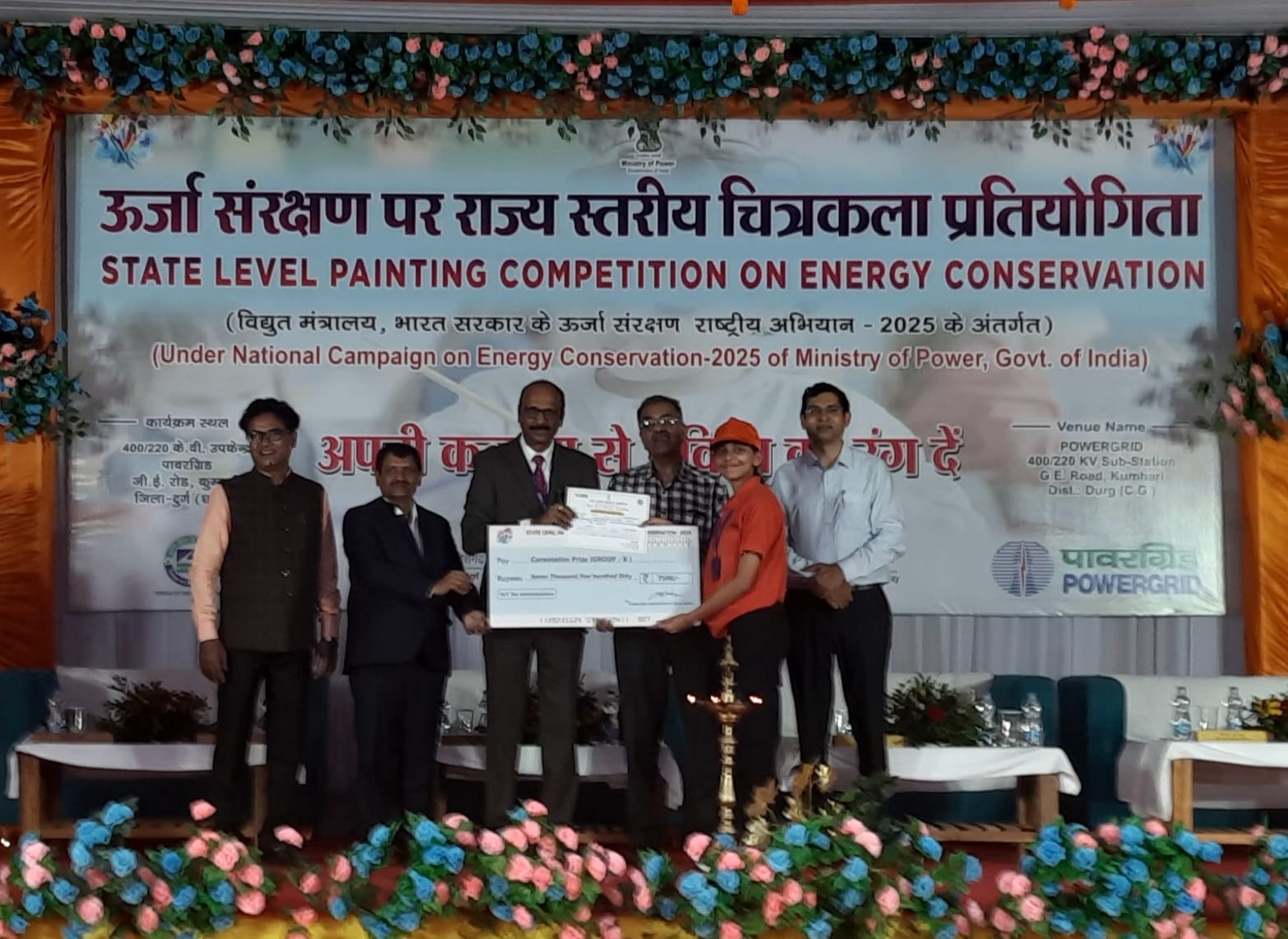 कोरबा (ट्रैक सिटी) पावर ग्रिड द्वारा ऊर्जा संरक्षण विषय पर आयोजित राज्य स्तरीय चित्रकला प्रतियोगिता में कोरबा की होनहार बिटिया श्रेया साहू ने दिए गए विषय ” एक ग्रह एक अवसर ऊर्जा बचाए ” पर निर्धारित दो घंटे में बेहतरीन चित्रकला का प्रदर्शन कर 7500 रुपये का चेक एवं सर्टिफिकेट से सम्मानित हुई है। उपरोक्त राज्य स्तरीय चित्रकला प्रतियोगिता का आयोजन दिनांक 25 नवंबर 2025 को पावर ग्रिड कुम्हारी रायपुर में किया गया, जिसमें मुख्य अतिथि के रूप में रजनीश तिवारी मुख्य महाप्रबंधक पावर ग्रिड पश्चिम क्षेत्र नागपुर रहे तथा विशिष्ट अतिथि संजय खंडेलवाल मुख्य अभियंता सी एस पी डी सी एल दुर्ग क्षेत्र रहे एवं कार्यक्रम के अध्यक्षता आर. पी. साहू प्रबंधक एवं नोडल अधिकारी पावर ग्रिड कुम्हारी के द्वारा की गई। श्रेया साहू ने राज्य स्तरीय चित्रकला प्रतियोगिता पावर ग्रिड का यह पुरस्कार लगातार तीसरे वर्ष प्राप्त की है। श्रेया ने ऊर्जा संरक्षण के विभिन्न उपायों एवं वैकल्पिक ऊर्जा स्रोतों के उपयोग के संदेश को बड़ी बखूबी के साथ अपने चित्रकला के माध्यम से प्रदर्शित किया। इससे पूर्व भी श्रेया प्रतिभा सम्मान योजना के अंतर्गत राज्य स्तरीय चित्रकला प्रतियोगिता में मुख्यमंत्री से सम्मानित हो चुकी है एवं विभिन्न चित्रकला प्रतियोगिताओं में पुरस्कार प्राप्त कर चुकी है। वर्तमान में श्रेया साहू न्यू एरा प्रोगेसिव स्कूल कोरबा में कक्षा दसवीं की छात्रा है एवं हरि सिंह छत्री से चित्रकला की शिक्षा प्राप्त कर रही है। श्रेया के पिता घनश्याम साहू छत्तीसगढ़ राज्य विद्युत उत्पादन कंपनी डीएसपीएम कोरबा पूर्व में कार्यरत है तथा माता श्रीमती नर्मदा साहू शासकीय प्राथमिक शाला अंधरीकछार में शिक्षिका के पद पर पदस्थ है। श्रेया की इस उपलब्धि पर सभी ने उसके उज्जवल भविष्य की कामना प्रेषित की है।