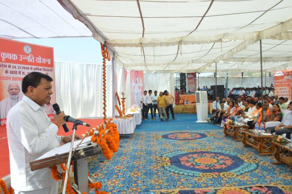 कैबिनेट मंत्री श्री देवांगन ने कार्यक्रम को संबोधित करते हुए कहा कि प्रधानमंत्री श्री मोदी की गारंटी के तहत मुख्यमंत्री श्री विष्णु देव साय के नेतृत्व में राज्य सरकार के गठन के साथ ही विकास का कार्य तेजी से प्रारंभ हो गया है। राज्य सरकार द्वारा, मजदूर, व्यापारी, युवा, कमजोर वर्ग, महिला पुरूष समाज के सभी वर्ग के हितों में ध्यान में रखकर कार्य किया जा रहा है। किसान हितैषी प्रदेश सरकार द्वारा अपने वादा अनुरूप खरीफ विपणन वर्ष 2023 में किसानो से समर्थन मूल्य पर खरीदी की गई धान के अंतर की राशि का एकमुश्त भुगतान किसानों के खाते में किया जा रहा है। जिससे जिले की लगभग 43 हजार से अधिक किसान लाभान्वित हुए हैं। उन्होंने सभी किसानों को बधाई एवं शुभकामनाएं देते हुए कहा कि योजना से किसान आर्थिक रुप से मजबूत बनेंगे। मंत्री श्री देवांगन ने कहा कि प्रधानमंत्री श्री मोदी ने देश को सशक्त बनाया है। उनकी अगुवाई में भारत हर क्षेत्र में शक्तिशाली एवं आर्थिक रूप से सुदृढ़ हुआ है। राज्य में मोदी की गारंटी शत प्रतिशत पूरी हो रही है। प्रदेश में सरकार बनते ही मुख्यमंत्री श्री साय ने पहली कैबिनेट बैठक में कमजोर वर्ग के लोगों के लिए 18 लाख पीएम आवास निर्माण की स्वीकृति दी। साथ ही किसानों को बकाया धान का बोनस उनके खाते में प्रदान की गई है। खरीफ विपणन वर्ष 2023 मद 3100 रुपए प्रति क्विन्टल समर्थन मूल्य पर एवं 21 क्विन्टल प्रति एकड़ की दर से अन्नदाताओं से धान की खरीदी की गई है। जिसके अंतर की राशि बोनस के रूप में आज एकमुश्त प्रदान की जा रही है। उन्होंने बताया कि तेंदूपत्ता संग्राहक परिवारों को लाभ पहुंचाने के लिए 5500 रूपए प्रति मानक बोरे की दर से हरा सोना की खरीदी की जाएगी। साथ ही उन्हें चरण पादुका जैसे अन्य योजनाओं से भी लाभान्वित किया जाएगा। 10 मार्च को महतारी वंदन योजना के तहत महिलाओं के खाते मेंएक हजार की मासिक सहायता राशि जारी की गई है। पीएम विश्वकर्मा योजना से कारीगरों को रोजगार उपलब्ध कराने का कार्य किया जा रहा है। केसीसी के माध्यम से किसानों को शून्य प्रतिशत ब्याज पर ऋण उपलब्ध कराया जा रहा है, जिससे किसान सशक्त बन रहे है। इसी प्रकार प्रदेश सरकार द्वारा जनहित में आगे भी निरंतर कार्य किया जाएगा। उन्होंने कहा कि जिला प्रशासन द्वारा केंद्र एवं राज्य सरकार की सभी कल्याणकारी योजनाओं का धरातल पर बेहतर क्रियान्वयन किया जा रहा है। साथ ही सभी किसानों से जनहितैषी योजनाओं से जुड़कर लाभ लेने का आग्रह किया। जिससे जिले के साथ ही राज्य का विकास हो।