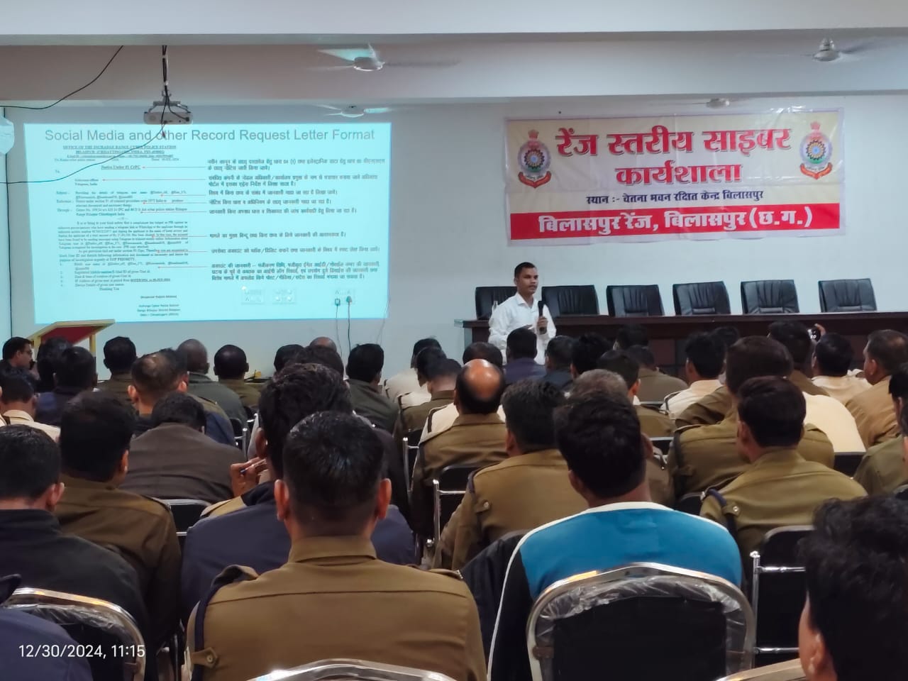 बिलासपुर (ट्रैक सिटी) सायबर क्राईम के पीड़ितों को समय पर राहत प्रदाय करने के लिए बिलासपुर रेंज के जिलों के थानों से चयनित आरक्षक व प्रधान आरक्षकों को चौथे सत्र में आज दिनांक 30/12/2024 को डॉ.संजीव शुक्ला, पुलिस महानिरीक्षक, बिलासपुर रेंज, बिलासपुर के निर्देशन/मार्गदर्शन में ‘‘चेतना भवन’’ रक्षित केन्द्र बिलासपुर में प्रशिक्षण दिया गया।