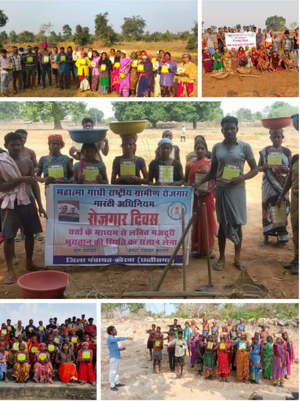 कोरबा (ट्रैक सिटी)/ महात्मा गांधी राष्ट्रीय ग्रामीण रोजगार गारंटी योजनांतर्गत ग्राम पंचायतों में, मनरेगा कार्यस्थलों में प्रतिमाह 07 तारीख को मनाए जाने वाले रोजगार दिवस में शुक्रवार ग्रामीणों को पर्यावरण संरक्षण एवं पर्यावरण प्रबंधन के महत्व की जानकारी दी गई। इसके साथ ही मनरेगा मजदूरी भुगतान प्रक्रिया के विषय में बताया गया।