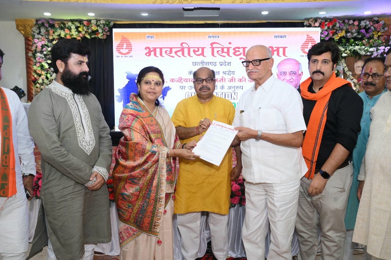 स्व कन्हैयालाल छुगानी जी की जयंती पर आयोजित कार्यक्रम में भारतीय सिंधु सभा छत्तीसगढ़ द्वारा वन नेशन वन इलेक्शन पर सहमति प्रस्ताव, अभियान की प्रदेश प्रभारी महासमुंद सांसद रूप कुमारी चौधरी के समक्ष पारित किया गया, जिसकी लिखित प्रति समाज के अग्रणी वरिष्ठ समाजसेवी आसुदामल वाधवानी, भाजपा प्रदेश मीडिया प्रभारी अमित चिमनानी ,पूर्व विधायक श्रीचंद सुंदरानी , भाजपा नेता सतीश