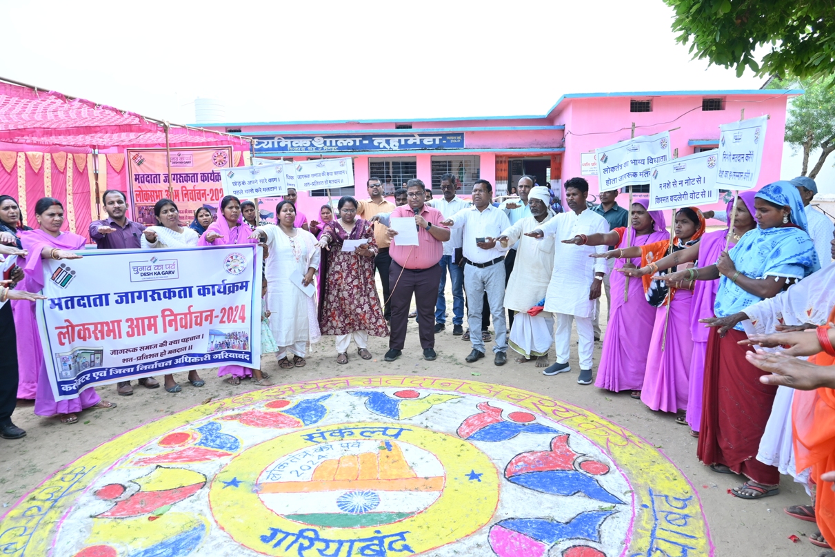 कलेक्टर श्री अग्रवाल ने विशेष पिछड़ी जनजाति के सदस्यों और ग्रामीणों को आगामी लोकसभा निर्वाचन में अपने मताधिकार का उपयोग करने और लोकतंत्र में अपना योगदान देने की शपथ दिलाई। लोगों ने निर्भीक होकर धर्म, वर्ग, जाति एवं समुदाय से प्रभावित हुए बिना निर्वाचन में अपने मताधिकार का प्रयोग करने की शपथ ली। ग्रामीणों ने मतदाता जागरूकता से संबंधित नारे ‘छोड़ के अपने सारे काम- पहले चलो करे मतदान, ‘नागरिकों की है पहचान, सबसे पहले मत का दान’, ‘सबका यह अरमान है, करना सब मतदान है’, ‘आओ मिलकर अलख जगाएं शत प्रतिशत मतदान कराएं’ लिखे तख्तियों के माध्यम से लोगों को मतदान के प्रति जागरूक करने का संदेश दिया।