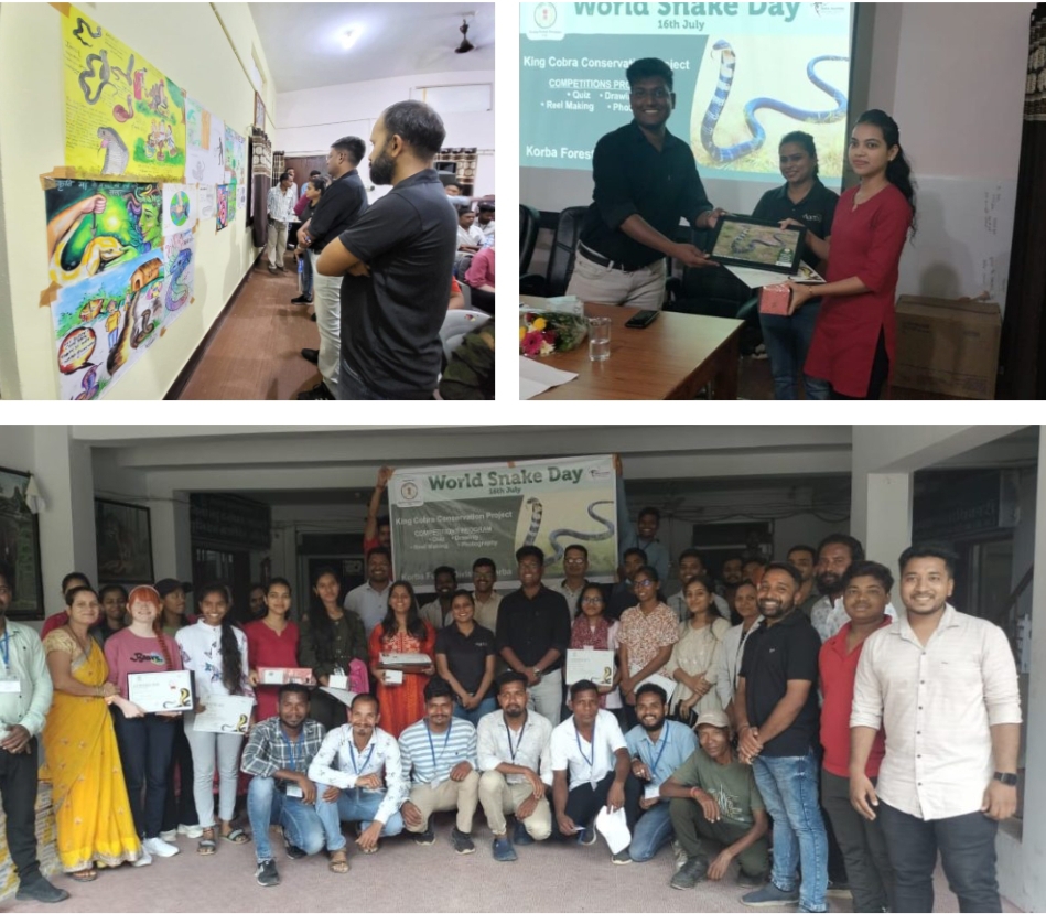 जिसमें रील मेकिंग, ड्राइंग, क्विज़ आदि शामिल थे पूरे कोरबा के छात्रों ने इस कार्यक्रमों में भाग लिया था जिसमें भाग लिए प्रतिभागियों को पुरस्कृत करने एवम विश्व सर्प दिवस मनाने के लिए वन विभाग के हाल में अयोजित कार्यक्रम आयोजित किया गया जहां सभी को प्रोजेक्टर के माध्यम से चलचित्र दिखाए गए, उसके पश्चात चित्रकला में भाग लिया बच्चों को किंग कोबरा फ्रेम सर्टिफिकेट देकर सम्मानित किया गया जिसमें प्रथम स्थान श्रृष्टि शर्मा, दूसरा स्थान प्रिंस कुमार, तीसरा स्थान राहुल यादव फिर रील बनाने में प्रथन स्थान सैलेश, लहरे, दूसरा स्थान स्वेता उपाधाय तीसरा स्थान भूमिका टंडन प्रशन/उत्तरी में प्रथान स्थान संजना बर्वे दूसरा स्थान कृष्णा बर्वे और तीसरा स्थान श्रद्धा को मिला उसके साथ ही बताया गया की किंग कोबरा क्यों महत्वपूर्ण है,