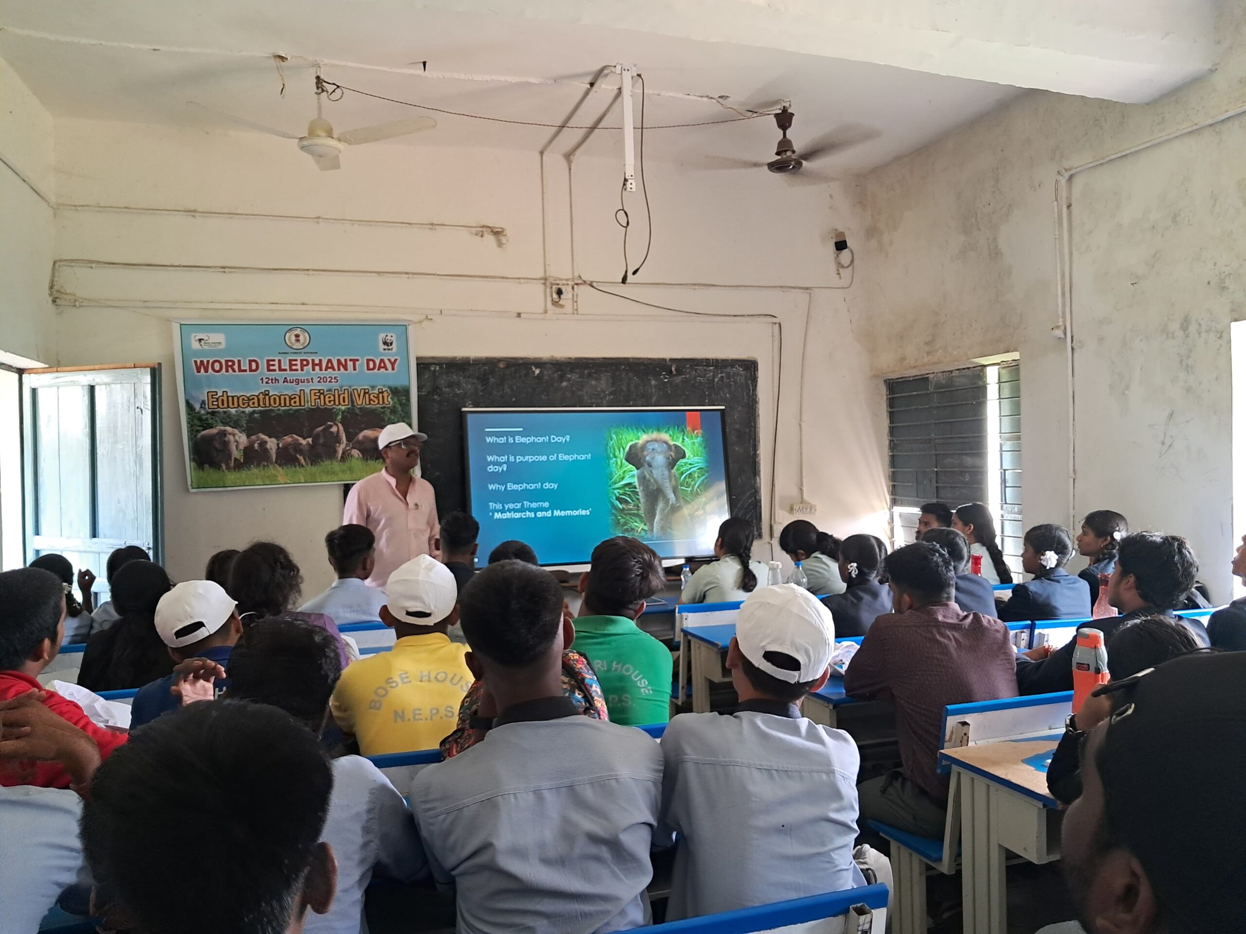 WWF के उपेंद्र दुबे जी ने विद्यार्थियों से कहा कि, हाथियों के बारे में सीखी गई बातें अपने परिवार और समुदाय के साथ साझा करें, ताकि संरक्षण की यह भावना और गहरी हो।