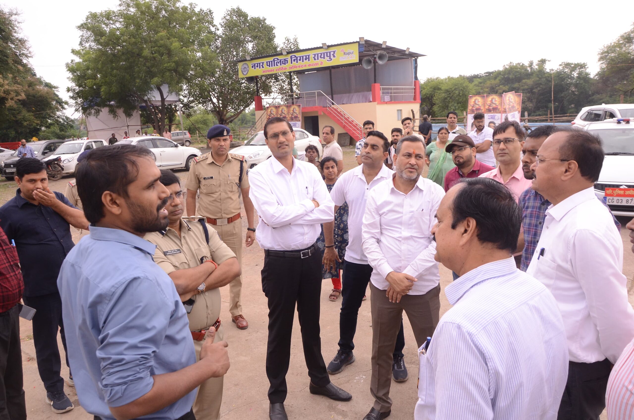 रायपुर (ट्रैक सिटी)। महादेव घाट में गणेश विसर्जन की तैयारियां पूरी कर ली गई है। आज एसएसपी संतोष सिंह एवं नगर निगम आयुक्त अबिनाश मिश्रा ने विसर्जन कुंड स्थल का निरीक्षण किया। उन्होंने विसर्जन कुंड के करीब में ही गोताखोरों को तैनात रहने के निर्देश दिए है। साथ ही सुरक्षा व्यवस्था पुख्ता रखने के निर्देश दिए है। साथ ही विसर्जन कुंड के आसपास साफ-सफाई रखने के निर्देश दिए है। इस अवसर पर अपर कलेक्टर देवेंद्र पटेल भी उपस्थित थे।