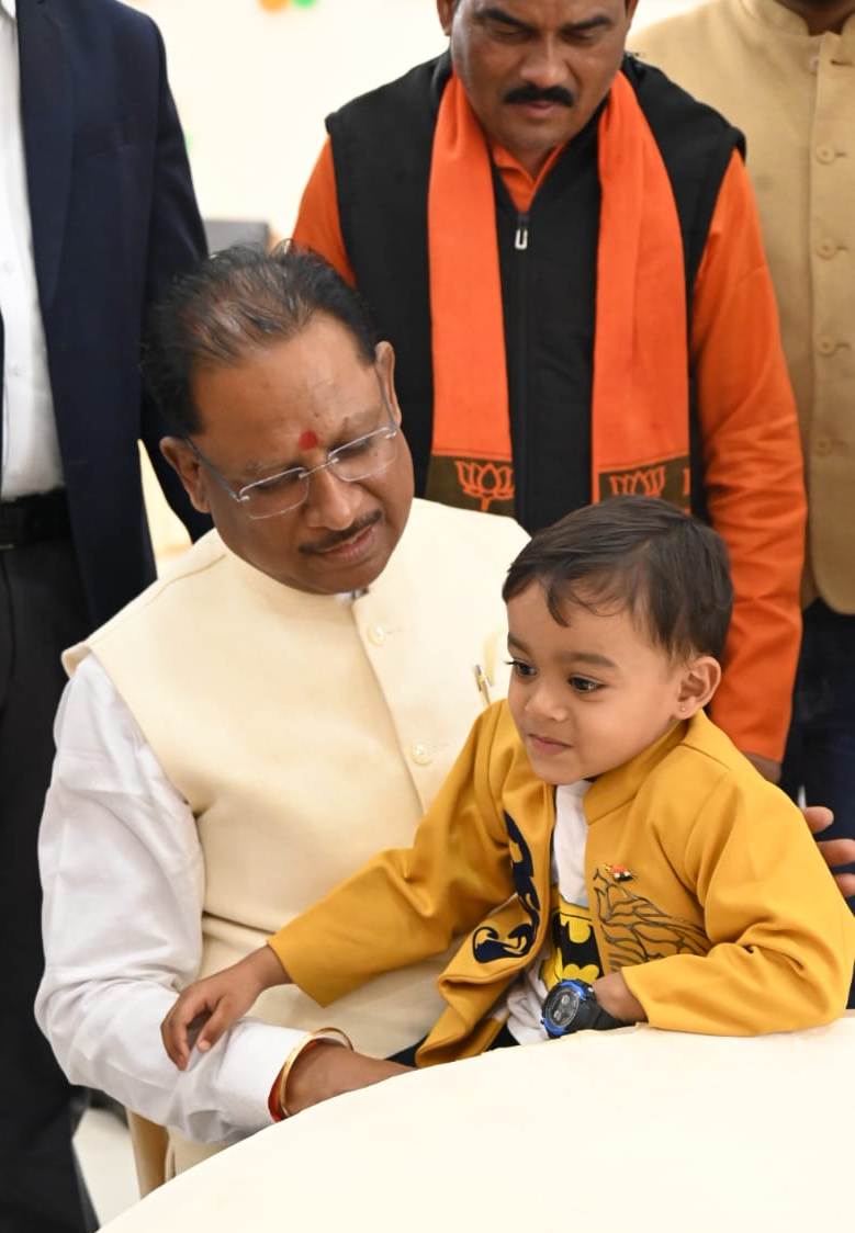 रायपुर (ट्रैक सिटी) मुख्यमंत्री विष्णु देव साय ने जगदलपुर प्रवास के दौरान अमर वाटिका में शहीद के परिजनों के साथ चर्चा के दौरान शहीद जयसिंह के नाती तेजस को गोद में लेकर दुलारा और परिवार जनों से कुशल क्षेम पूछा।