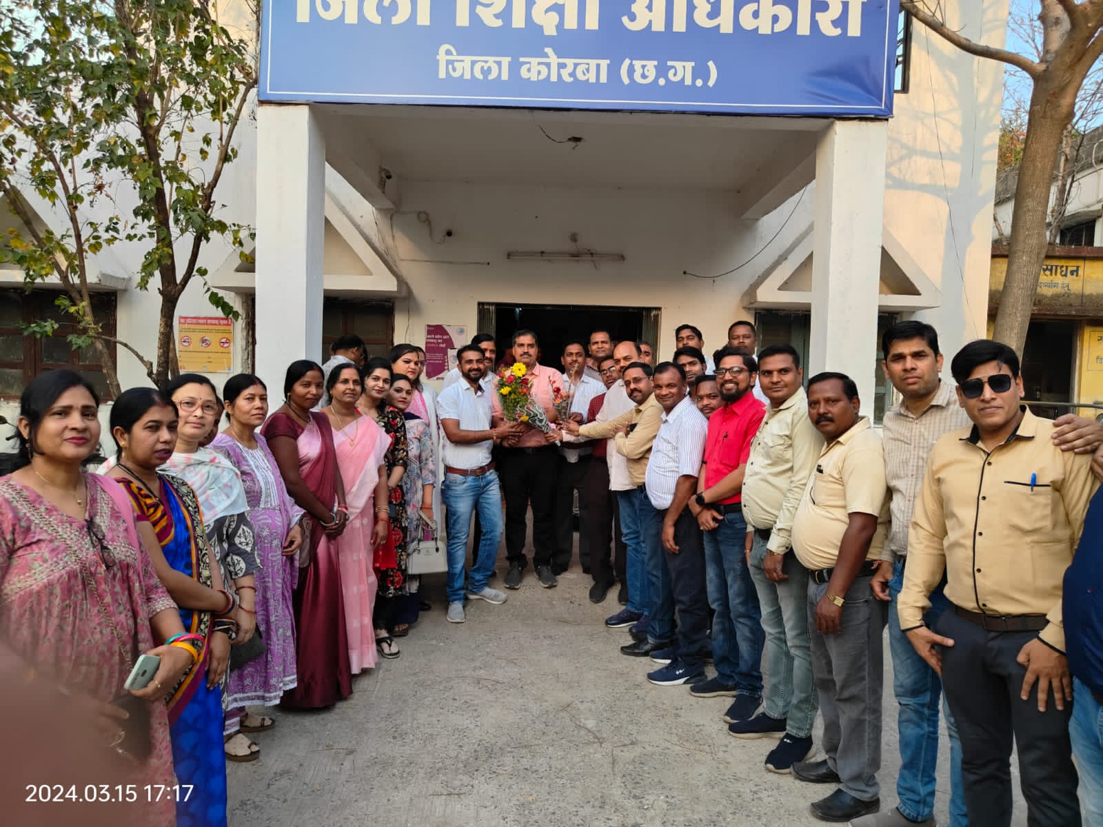 शालेय शिक्षक संघ जिला इकाई कोरबा के प्रांतीय पदाधिकारी राम चरण साहू , भावदीप दुबे, चंद्रेश दुबे, जिलाध्यक्ष वेदव्रत शर्मा, जिला सचिव चंद्रिका प्रसाद पाण्डेय, जिला महिला प्रकोष्ठ प्रभारी ईश्वरी तिवारी, हेमलता राठौर जिला पदाधिकारी शिव साहू, राहुल मिश्रा,पायल साहू, जया वैष्णव, रामनारायण चौहान, शशि राठौर, शालेंद्र राठौर, यामिनी राठौर, प्रेमलता दिव्या, वीना महंत , खगेश्वरी उरांव, रोशनी पटेल ,रितु श्रीवास्तव, ब्लॉक अध्यक्ष कटघोरा जय प्रकाश झा, ब्लॉक अध्यक्ष कोरबा भानू प्रसाद साहू, नंद किशोर कंवर, राजेंद्र देवांगन, गोरे लाल उरांव, हरिशंकर दिवाकर, एस पी साहू, जानू वैष्णव, उमेश कुमार, की उपस्थिति में नव नियुक्त जिला शिक्षा अधिकारी टी पी उपाध्याय से गुलदस्ता भेंट कर मंगल बधाई एवं शुभकामनाएं दी है।