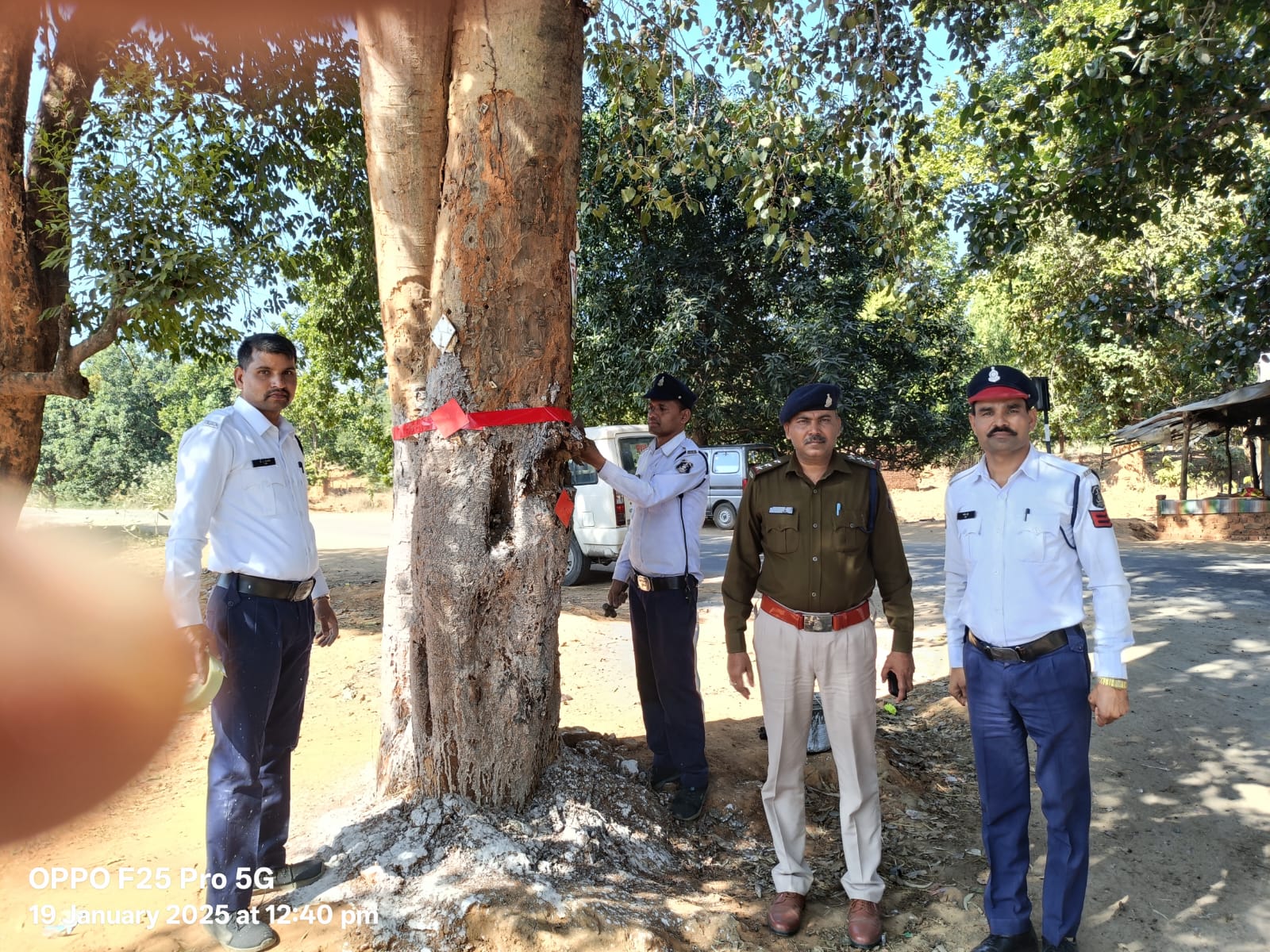 कोरबा (ट्रैक सिटी)/ एसपी एस. तिवारी (IPS) के निर्देशन में एवं यातायात एवं क्राइम प्रभारी आर. के. मीना (IPS) के मार्गदर्शन में यातायात पुलिस द्वारा सड़क सुरक्षा माह के तहत करतला, पसान, भैसमा, बागों एवं पाली क्षेत्र के सड़क मोड़ों पर दुर्घटनाओं को रोकने हेतु ट्रैफिक पुलिस द्वारा सफेद पेंट एवं रेडियम पट्टीकरण कार्य किया गया। 100 से अधिक पेड़ो पर सफेद पेंट एवं 200 से अधिक पेड़ो एवं खंभों पर रेडियम पट्टीकरण का कार्य किया गया इस पहल का उद्देश्य विशेष रूप से घुमावदार मार्गों पर दृश्यता बढ़ाकर वाहन चालकों को सुरक्षित मार्गदर्शन प्रदान करना एवं सड़क हादसों को रोकना है।