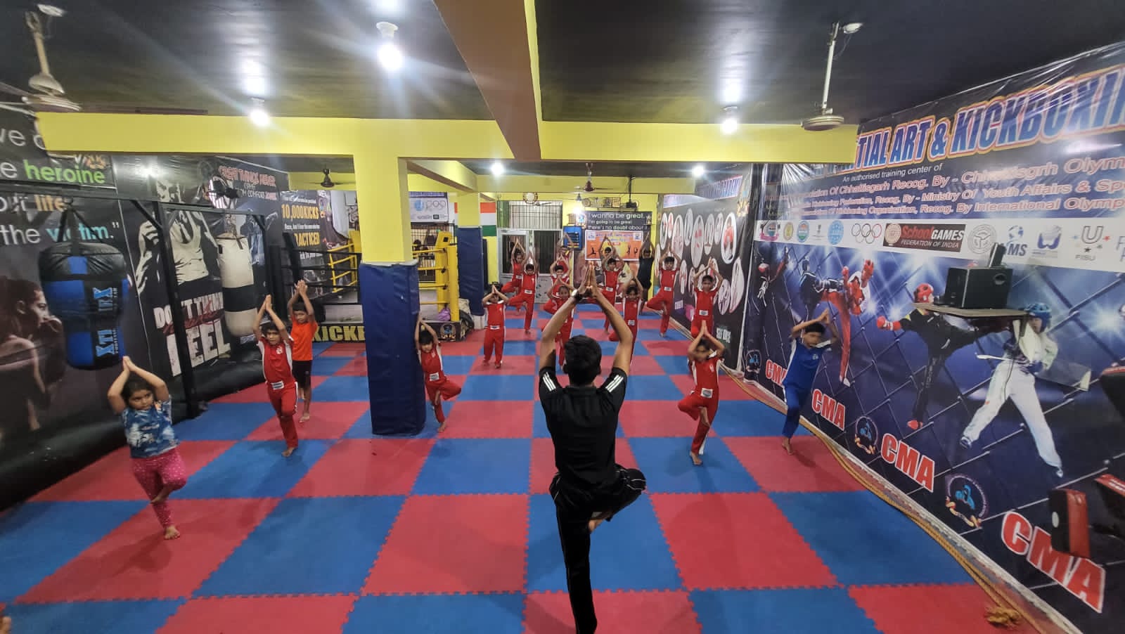 सी एम ए किकबाक्सिंग एकेडमी सहित विभिन्न स्थानों में क्रीड़ा भारती ने मनाया विश्व योग दिवस।
