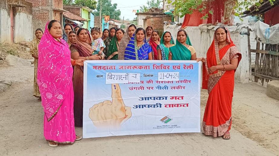 कलेक्टर एवं जिला निर्वाचन अधिकारी आकाश छिकारा के निर्देशन एवं जिला पंचायत सीईओ गोकुल रावटे के मार्गदर्शन में सतत रूप से मतदाताओं को जागरूक किया जा रहा है। इसी तारतम्य में स्वयं सहायता समूह की महिलाओं ने गुरुवार को मतदाता जागरूकता रैली निकाली गई। आज ग्राम बिरगहनी (च.) में मतदान जागरूकता का शिविर और रैली निकाली गई । रैली के दौरान स्वयं सहायता समूह की महिलाएं विभिन्न स्लोगन बोलकर जैसे सभी कार्य छोड़ दो सबसे पहले वोट दो, वोट डालने जाना हैं, अपना दायित्व निभाना है आदि के माध्यम से मतदाताओ को जागरूक किया। लोकतंत्र के इस पर्व में लोगो से बढ़ चढ़ कर भाग लेकर मतदान करने की अपील करे।