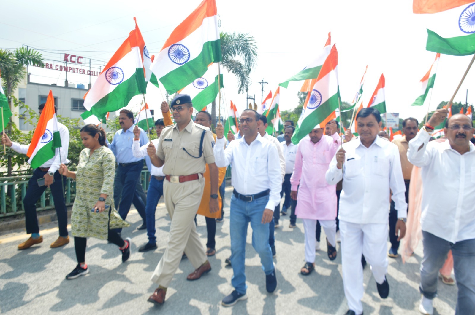 कोरबा (ट्रैक सिटी)/ हर घर तिरंगा अभियान के तहत जिले में देशभक्ति से प्रेरित विभिन्न गतिविधियों का आयोजन किया जा रहा है। इसी कड़ी में आज वाणिज्य उद्योग व श्रम मंत्री छत्तीसगढ़ शासन श्री लखन लाल देवांगन की उपस्थिति में कोरबा नगरीय क्षेत्र के घण्टाघर में तिरंगा यात्रा का आयोजन किया गया। कैबिनेट मंत्री श्री देवांगन ने तिरंगा यात्रा को हरी झंडी दिखाकर रवाना किया। यह रैली घंटाघर स्थित ओपन थियेटर मैदान से प्रारम्भ होकर शहर के प्रमुख चौक चौराहों से होते हुए सीएसईबी चौक स्थित एसईसीएल फुटबॉल ग्राउंड में समाप्त हुई।