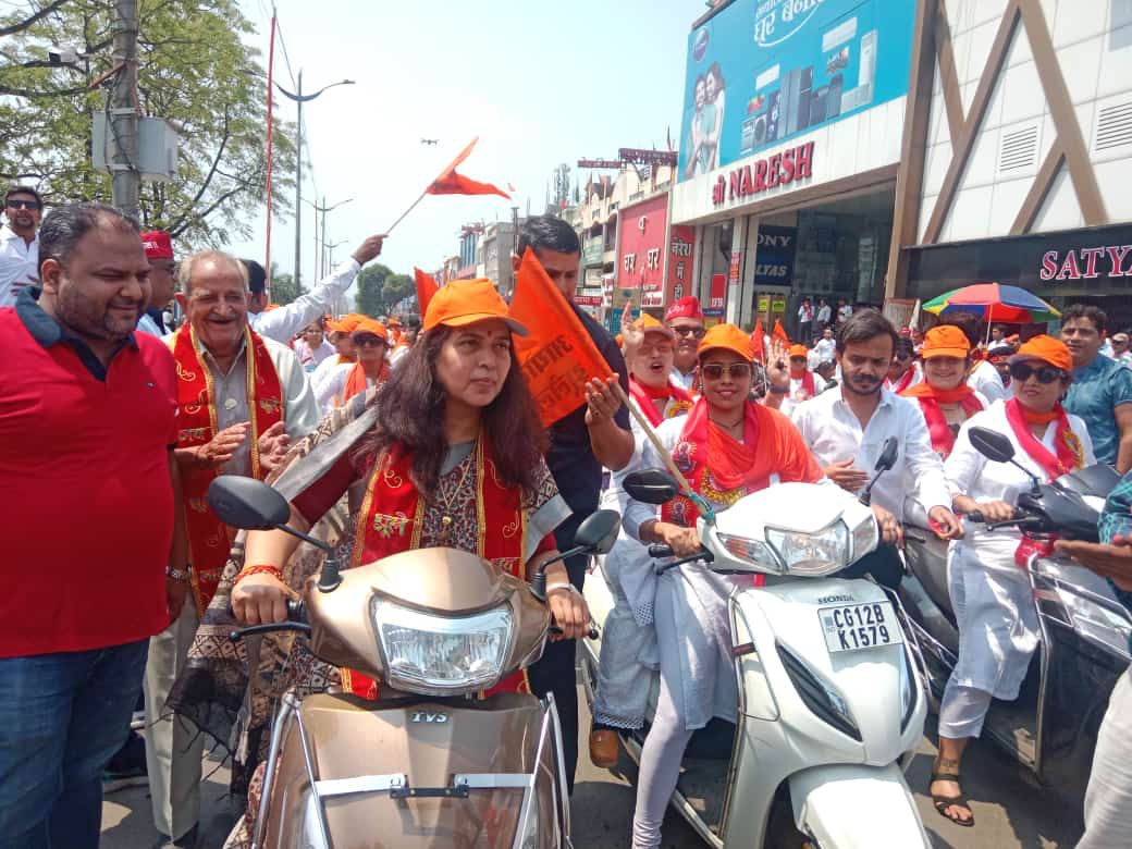 समाज के लोगों ने बताया कि नवरात्र के पहले दिन इस कार्यक्रम का आयोजन हुआ है। सिंधी गुरुद्वारा से शुरू हुई वाहन रैली ने मुख्य मार्ग से होते हुए पूरे शहर का भ्रमण किया। यह वाहन रैली जब ट्रांसपोर्ट नगर चौक पहुंची, तो वहां मौजूद भाजपा प्रत्याशी सरोज पांडे भी स्कूटी पर सवार होकर रैली के साथ सीएसईबी चौक तक पहुंचीं।