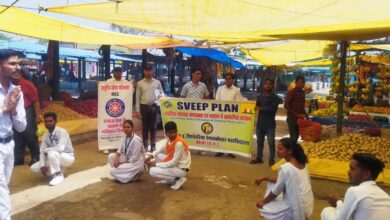 नुक्कड़-नाटक के माध्यम से छात्र-छात्राओं ने दिया मतदाता जागरूकता का संदेश।