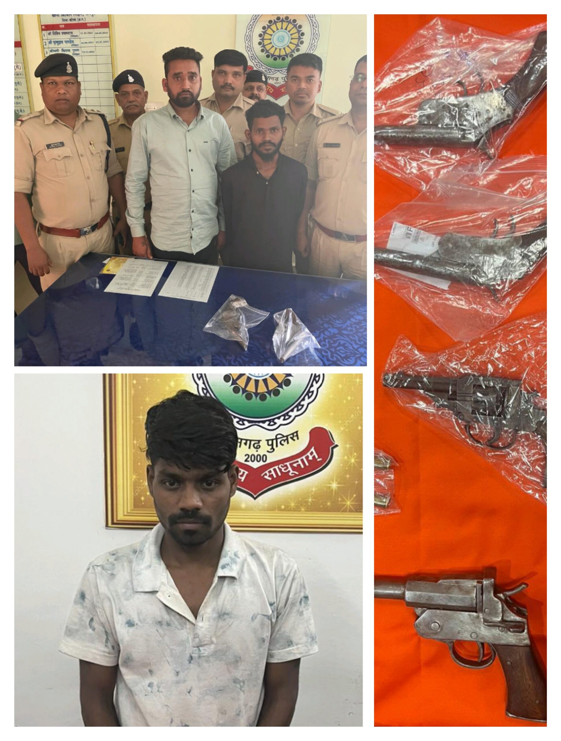 सायबर सेल कोरबा एवं पुलिस टीम कोरबा की संयुक्त कार्यवाही। 03 आरोपियों के कब्जे से 03 नग देसी कट्टा, 01 रिवाल्वर एवं 02 नग कारतुस को पुलिस ने किया बरामद।