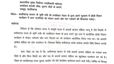 कृषि मंत्री रामविचार नेताम के खिलाफ कांग्रेस ने चुनाव आयोग में किया शिकायत