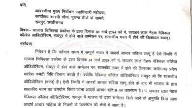 रायपुर। भाजपा चिकित्सा प्रकोष्ठ के द्वारा दिनांक 31 मार्च 2024 को पं. जवाहर लाल नेहरू मेडिकल कॉलेज ऑडिटोरियम,…