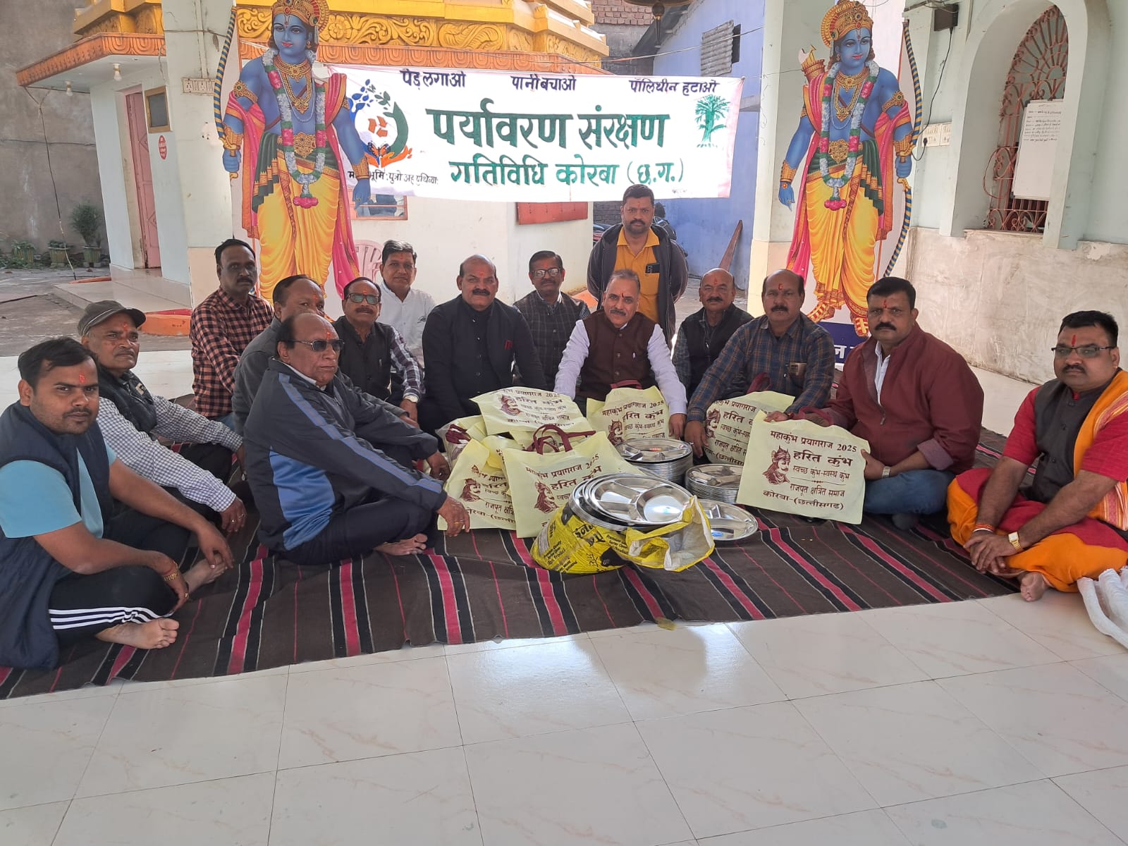 प्रयागराज में आयोजित प्लास्टिक मुक्त कुंभ 2025 के अंतर्गत “एक थाली एक थैला” अभियान के तहत कोरबा के राजपूत क्षत्रिय समाज द्वारा 251 थाली एवं थैला का सहयोग प्रदान किया गया ।