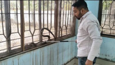 इंटक कार्यालय में घुसा 7 फिट का सांप, खिड़की में लगे जाली के अंदर फंसा वाइल्डलाइफ रेस्क्यु टीम अध्यक्ष जितेंद्र सारथी ने किया सफल रेस्क्यु।