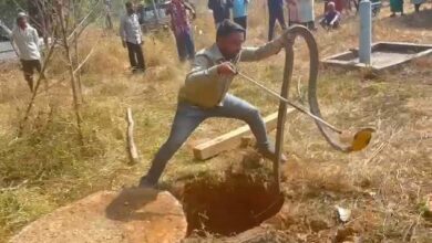 बंद पड़े सेफ्टिक टैंक में गिरा हुआ था 12 फिट का विशाल काय किंग कोबरा, कोरबा वन मण्डल एवं नोवा नेचर टीम ने किया रेस्क्यु।