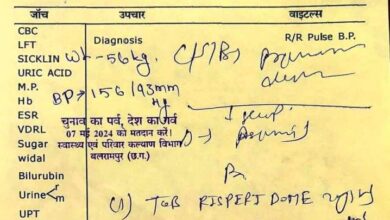 ओपीडी पर्ची में चुनाव का पर्व देश का गर्व का सील लगाकर 7 मई को मतदान करने का दिया जा रहा संदेश।