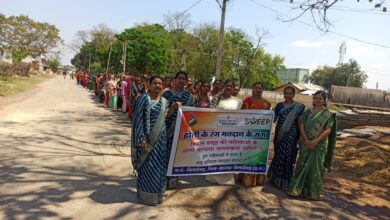 बिलाईगढ़ क्षेत्र में बिहान की महिलाओं ने होली थीम पर निकाली मतदाता जागरूकता रैली।