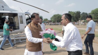 मुख्यमंत्री विष्णु देव साय का कटघोरा मेला ग्राउंड हेलीपेड पर जनप्रतिनिधियों ने किया आत्मीय स्वागत