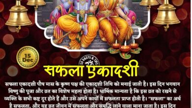 सफला एकादशी दिनांक 14 दिसंबर 2025 रविवार को सायं 06 बजकर 49 मिनट से प्रारंभ होकर अगले दिन दिनाँक 15…