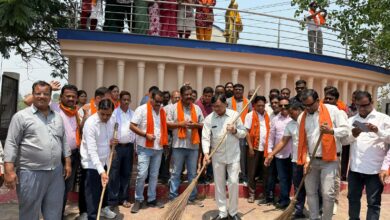 भाजपा स्थापना दिवस कार्यक्रम: उद्योग मंत्री लखन लाल देवांगन ने कार्यकर्ताओं के साथ लगाई झाड़ू, दिया स्वच्छता का संदेश।