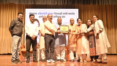 लोकमाता के कृतित्व को जनमानस तक पहुँचाने के लिए श्री अग्रसेन कन्या महाविद्यालय को किया गया सम्मानित