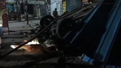 बिजली खंभे से टकराकर पलटी तेज रफ्तार कार, 1 की हुई दर्दनाक मौत।