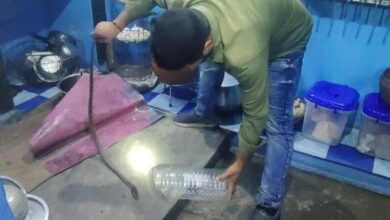 किचन में लगे कारपेट में घुस कर बैठा था नाग। वाइल्डलाइफ रेस्क्यु टीम द्वारा किया गया रेस्क्यू।