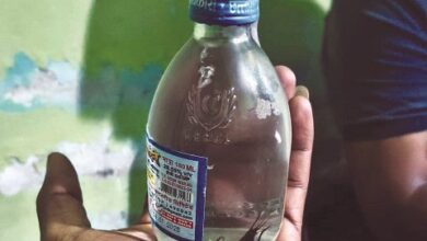 शासकीय देशी मदिरा दुकान से खरीदी गई शराब की बोतल में कीड़ा मिलने के बाद लोगों ने किया हंगामा।