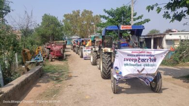 ट्रैक्टर रैली निकालकर शतप्रतिशत मतदान का दिया गया संदेश।