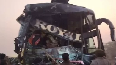 नेशनल हाइवे पर खड़े ट्रेलर से जा टकराई तेज रफ्तार बस, 16 यात्री घायल।
