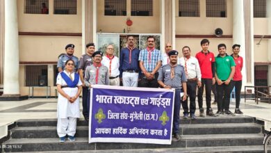 मुंगेली। भारत स्काउट गाइड जिला परिषद मुंगेली की बैठक राज्य मुख्य आयुक्त सोमनाथ यादव के निर्देशानुसारआज सम्पन्न हुई, जिसमें…