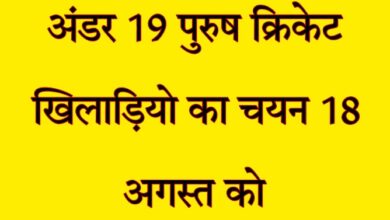 अंडर 19 पुरुष क्रिकेट खिलाड़ियो का चयन 18 अगस्त को