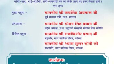 कोरबा (ट्रैक सिटी) छत्तीसगढ़ महतारी संस्कृति संवर्धन सेवा समिति के तत्वाधान में 20 वी रंगारंग हरेली महोत्सव 4 अगस्त रविवार…